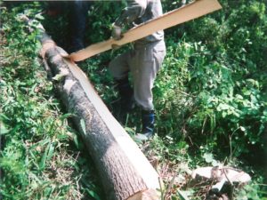 材料となる繊維は、夏の間に伐採したシナノキの表皮を剥いで、皮の外側の固い部分を取り除いて乾燥させます。