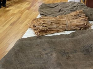 完成した「しなだ織」は丈夫で長持ちなことから、茂庭では蒸し布や蚕の桑を収穫する袋など生活用品に利用されていたそうです。